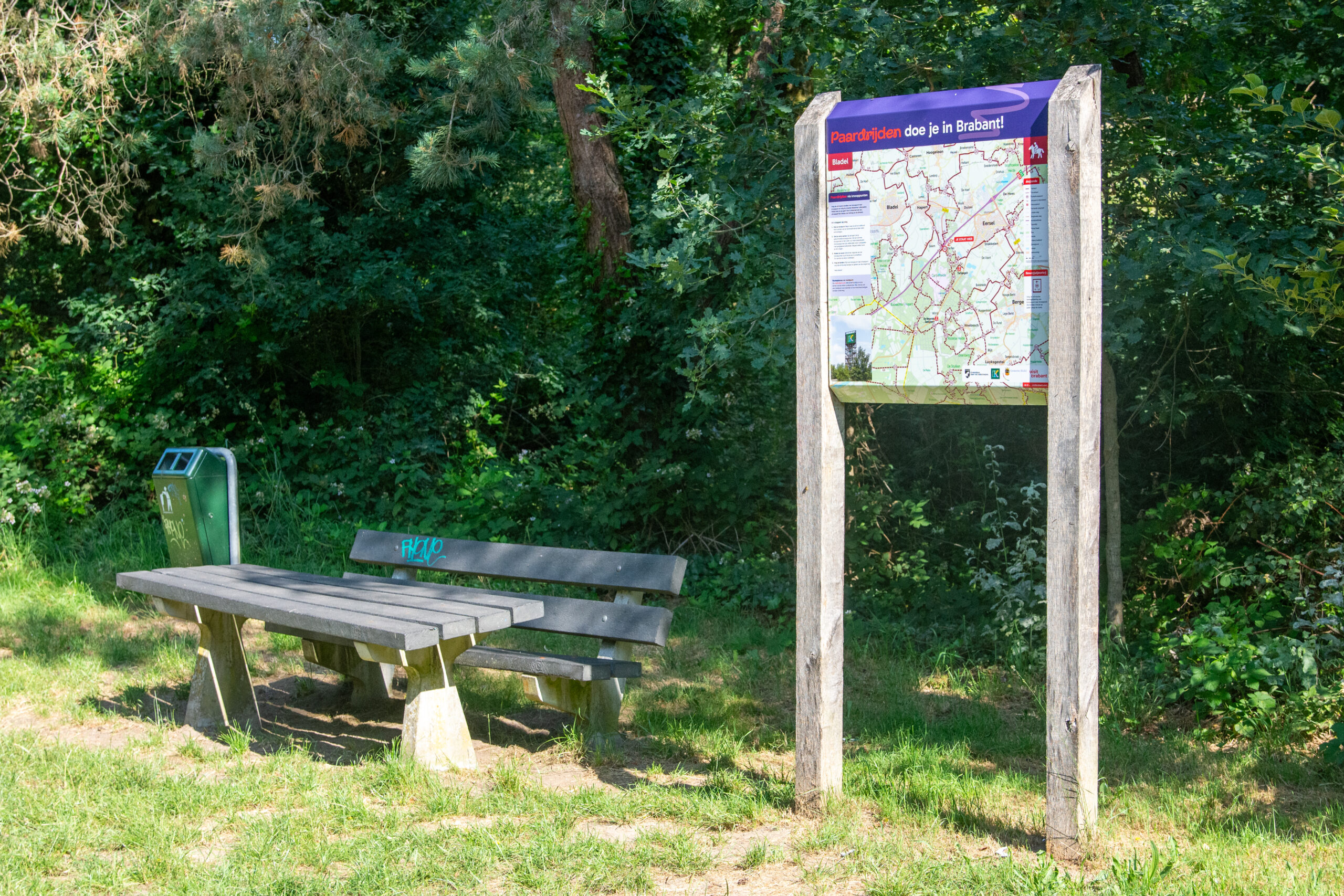 Parkeerplaats zonder voorzieningen, dichtbij aantrekkelijke paardrij-routes en direct aan het ruiterknooppuntensysteem (knooppunt