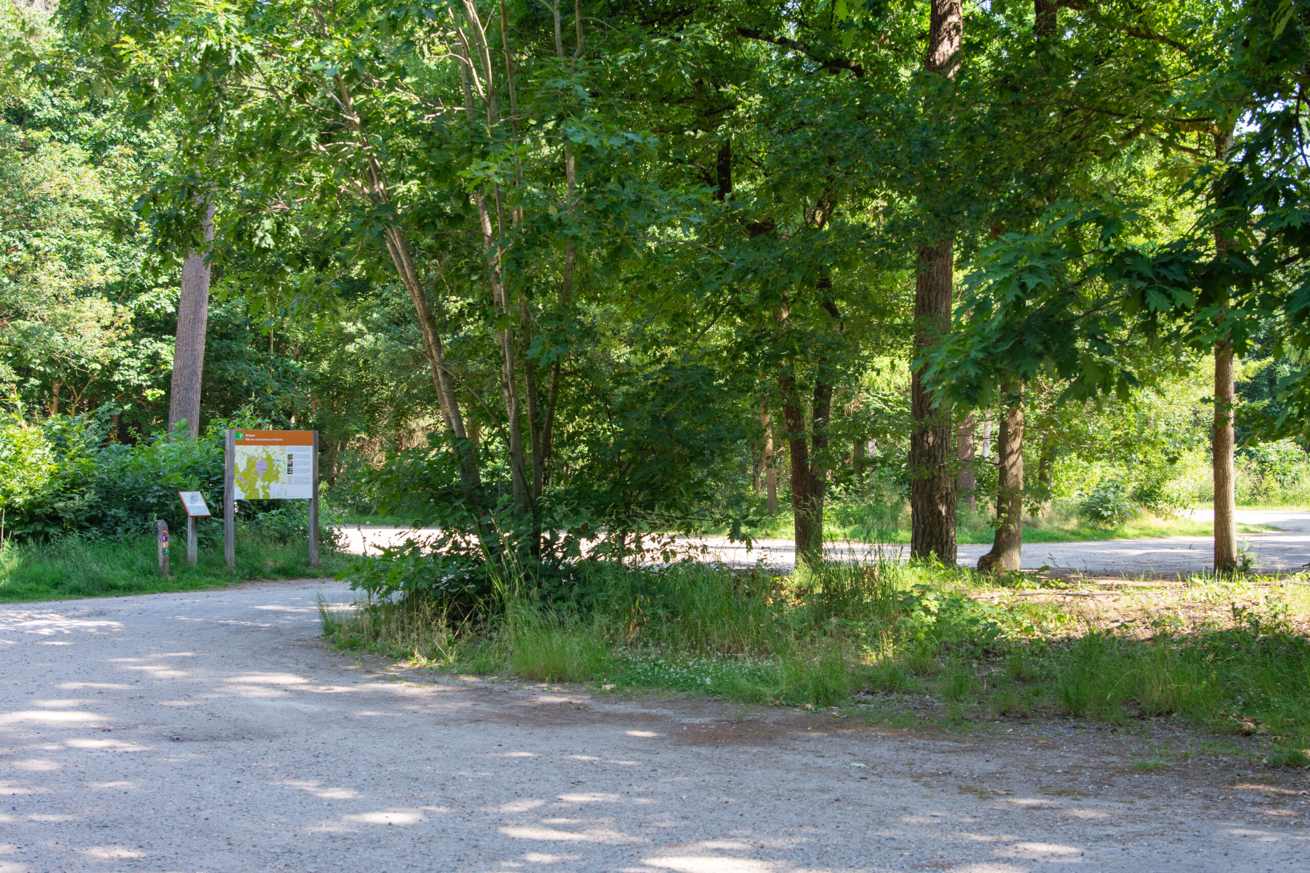 Parkeerplaats zonder voorzieningen, dichtbij aantrekkelijke paardrij-routes. Parkeer- en startlocatie van de Cartierheide route.
